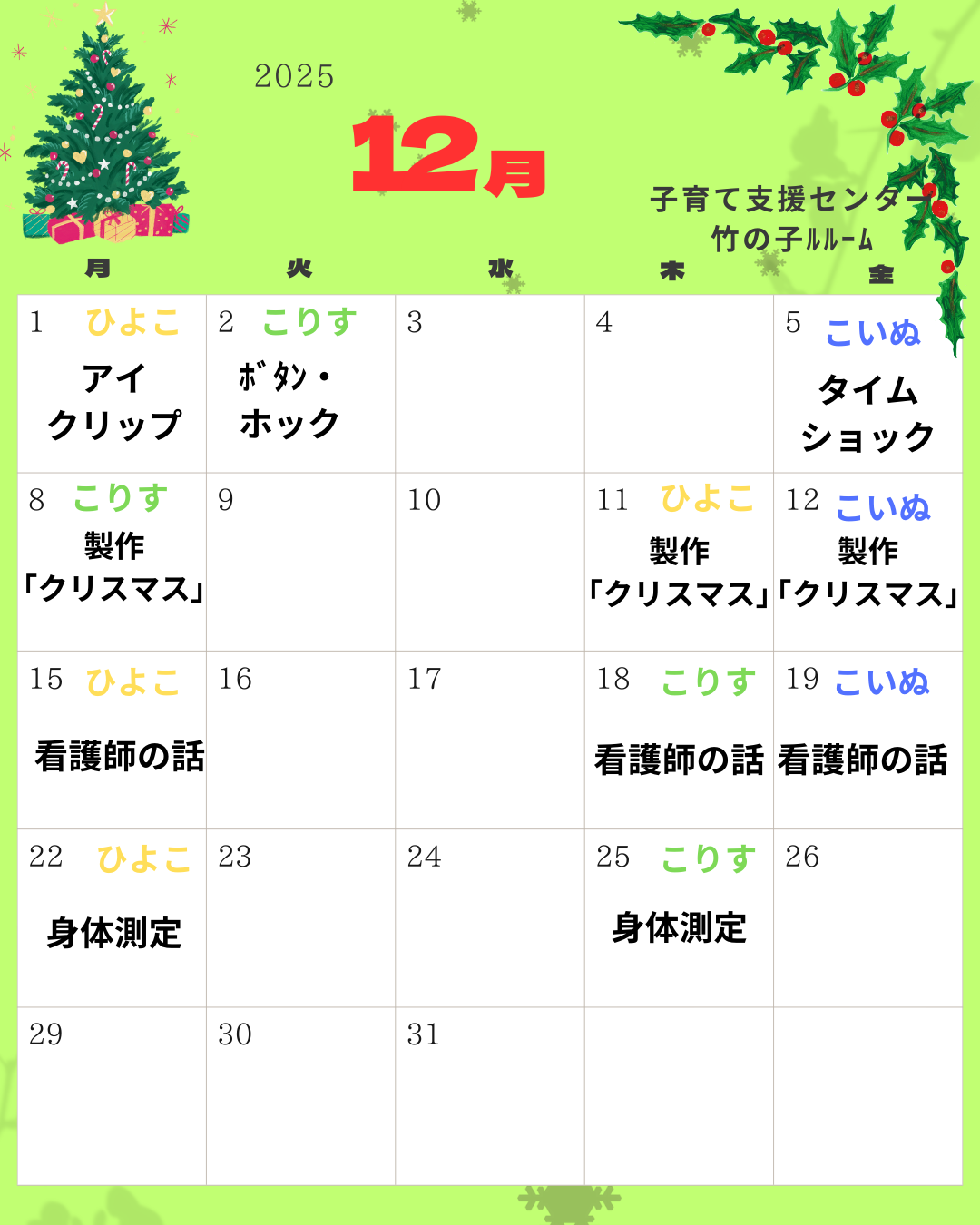 《参加型》12月24日(水)Xmasパーティーを行います。未就学児のお子様で利用登録のある方ならどなたでも参加できます。新規登録の方も大歓迎です。
