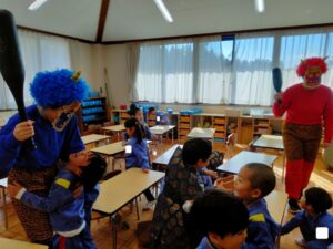 朝の登園時には、「今日、保育園に鬼くる?」とワクワクした表情の子もいれば、少し不安そうに先生の手を握る子もいて、子ども達のさまざまな気持ちが伝わってきました。