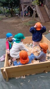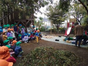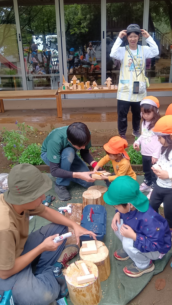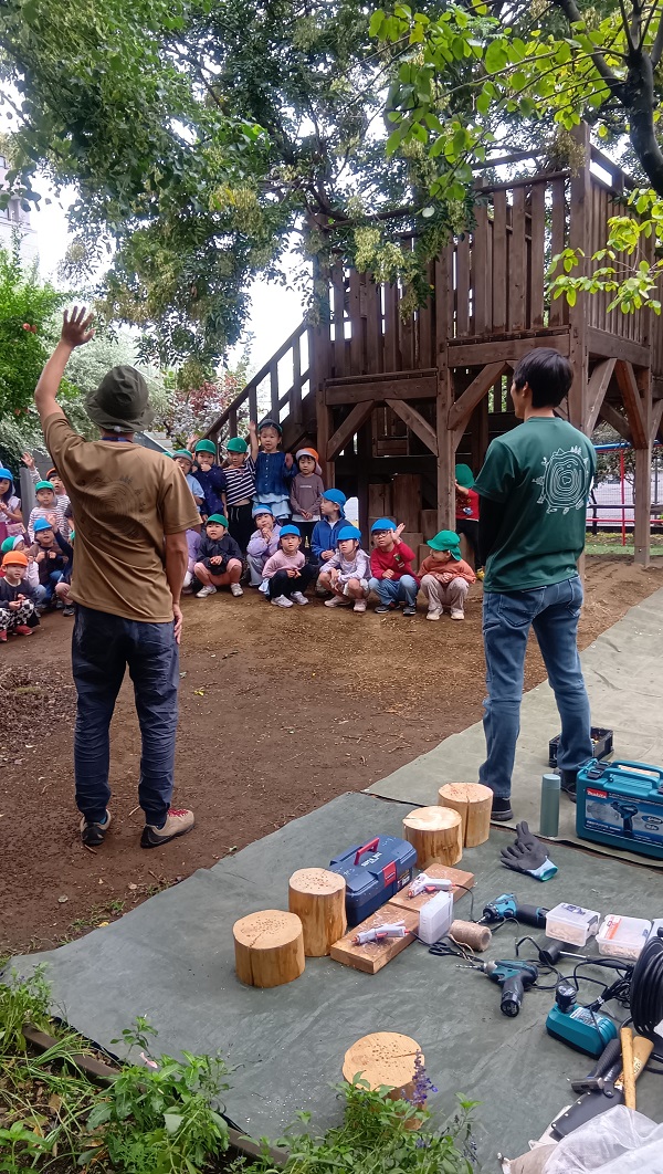 園庭にあるツリーハウスを造ってくれた「森と市場」さんが、