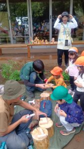 たくさんの「木っ端」とカンナで「削った木」を持って、子どもたちにワークショップを開いてくれました。