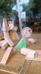 自分の好きな形の木っ端を選び、POSKAで絵を描き、「こんな形にしたい」という思いを言葉で伝え、