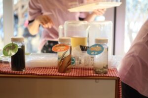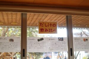 今年は、ダイニングに給食ブースを設け、試食や出汁の飲み比べを行いました。