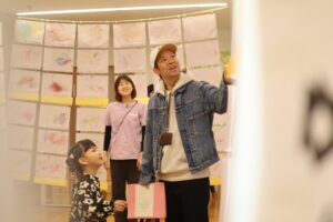 こぶし組の保護者の中には、作品を感慨深く見て「成長展を見ると、もう卒園なんだと実感します」