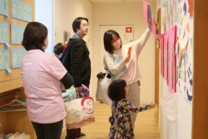 私たち保育者も日々の生活だけでなく、こうしたお子さんの成長を保育指針の5領域を可視化した内容で一年間取り組んだものを展示します。子どもと保護者と保育者、皆が一緒に成長を喜び合えること、幸せに思います。