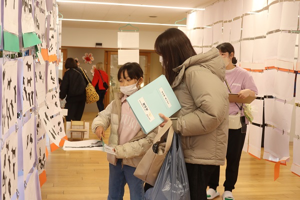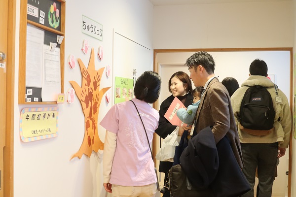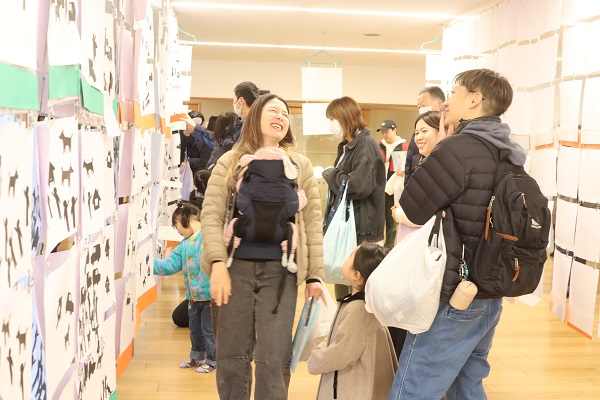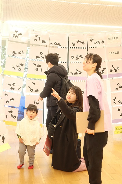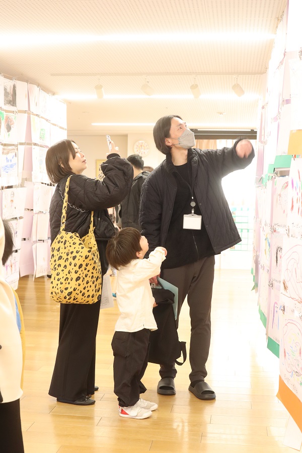 こぶし組の保護者の中には、作品を感慨深く見て「成長展を見ると、もう卒園なんだと実感します」
