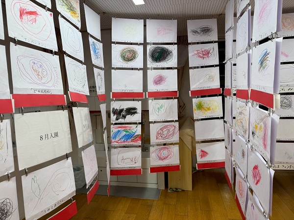さて、美術館のように子ども達の作品がズラッと展示された園内は、圧巻です!!