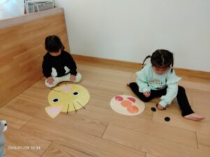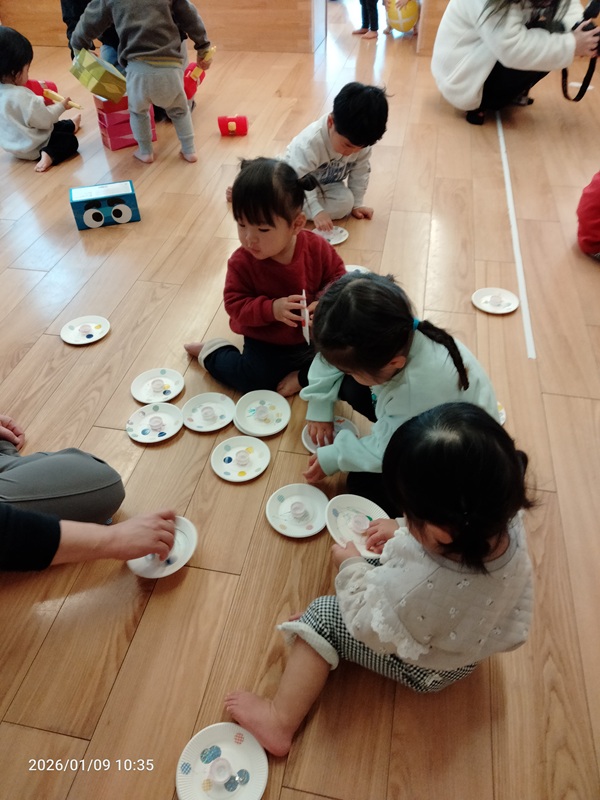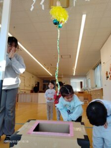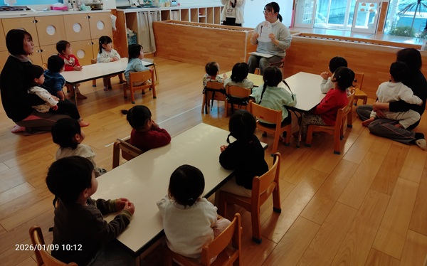 「お正月に初詣に行った人?」と聞いてみると、「○○ちゃん行ったよ!」と嬉しそうに教えてくれる子もいて、お正月の思い出を楽しそうに話す姿が見られました。