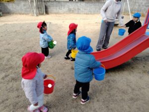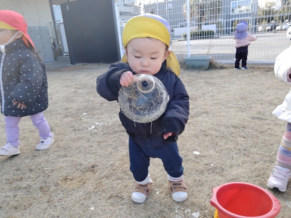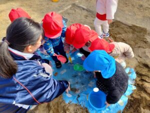寒い冬ならではの遊びを楽しむことができました。これからも子ども達の「なぜ?」「どうして?」の興味を大切に、遊びへとつなげていきたいと思います。