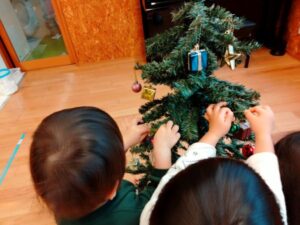 心羽ナーサリー高場でもわかば組の子ども達とクリスマスツリーの飾り付けを行いました🎄