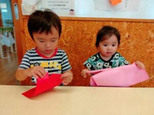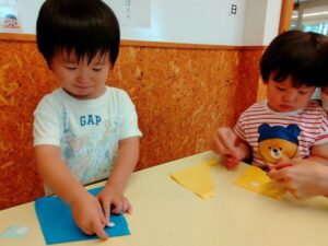 好きな色の画用紙を選んで、ビリビリビリーっと破き