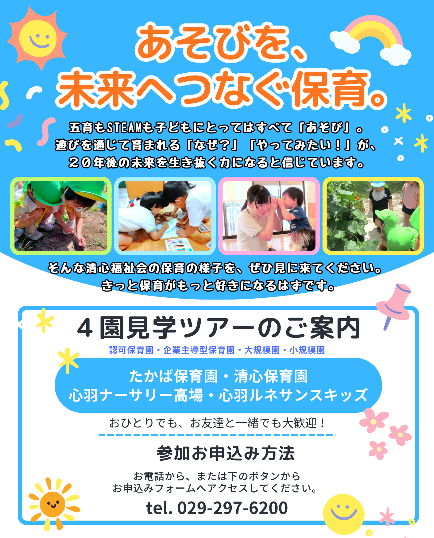 茨城県ひたちなか市にある4つの保育園を、半日で巡る見学ツアーです。